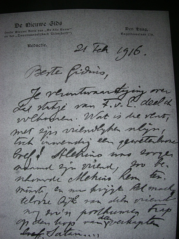Fragment uit brief Kloos aan Timmerman, 21/02/1916, LM 1989L-001166